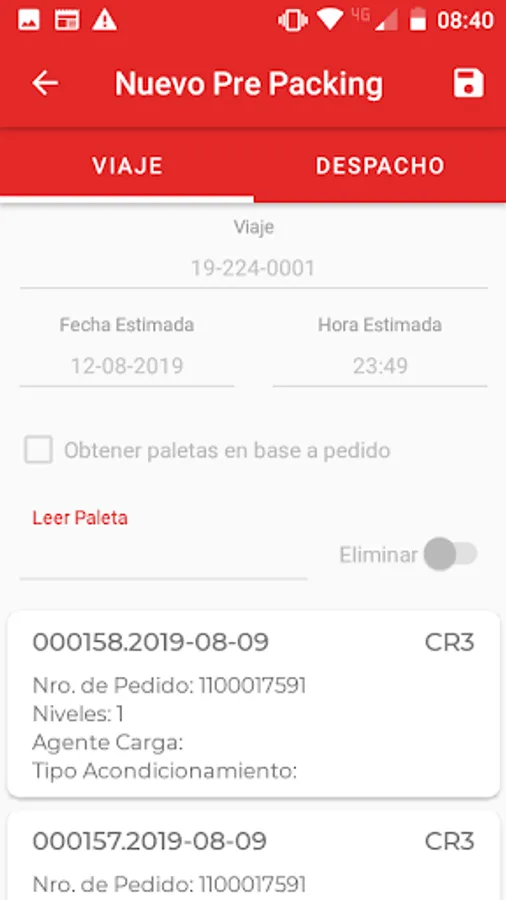 Mobile Application of PrePacking and Dispatch of pallets produced.