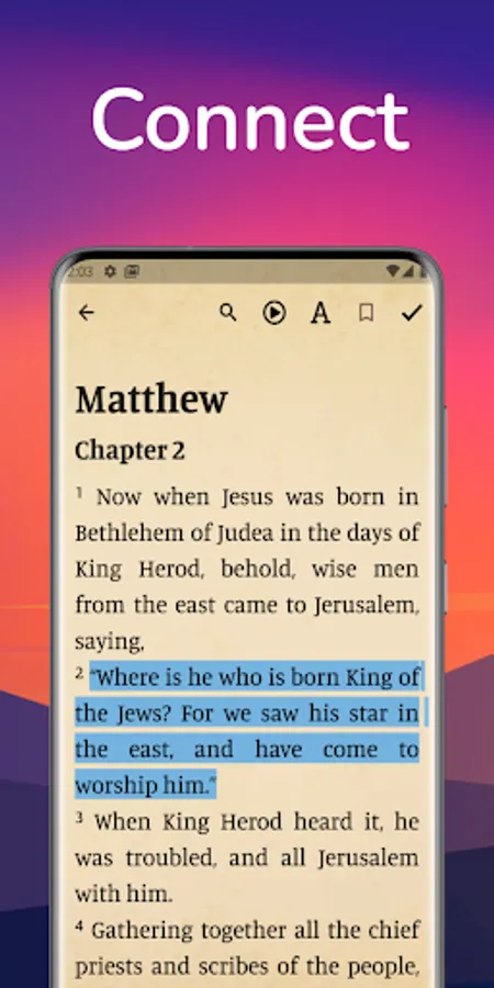 The app was designed for you to track your progress through the Readmeter. You can also highlight verses, share them on your favorite social network and inspire others.