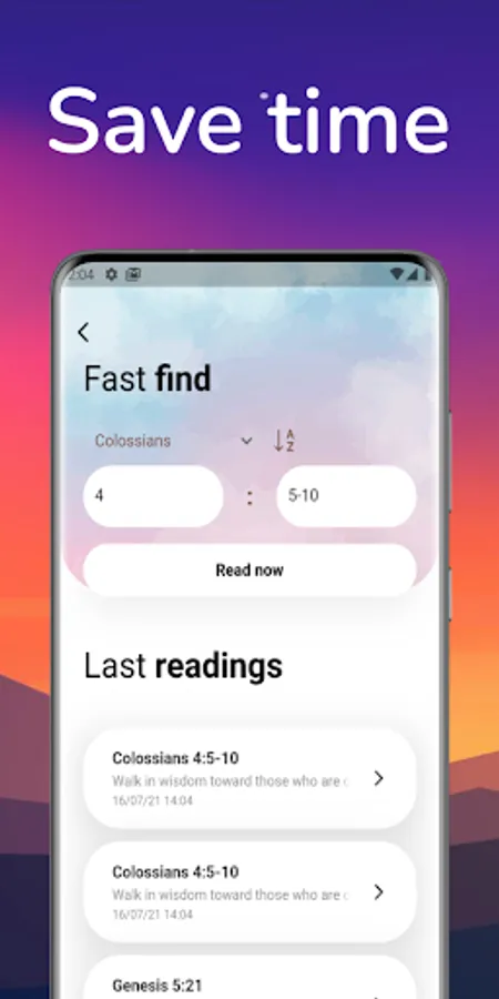 Take advantage of your idle moments during the day to continue your reading. Download now and get inspired daily with the Lightweight Bible Go.