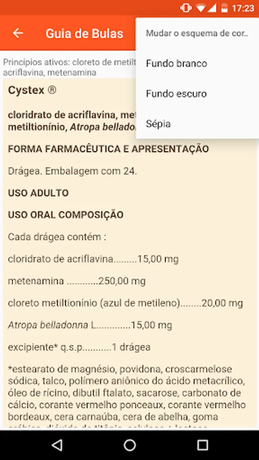 For a more pleasant reading, you can choose between three themes for viewing the package insert, in addition to being able to read in the landscape position.