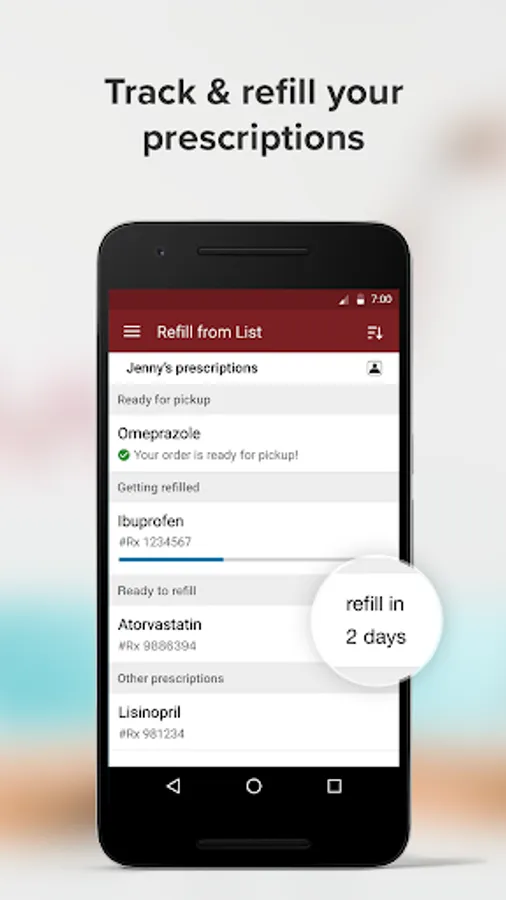 See all your prescriptions in one place and refill from a list or by scanning the prescription.