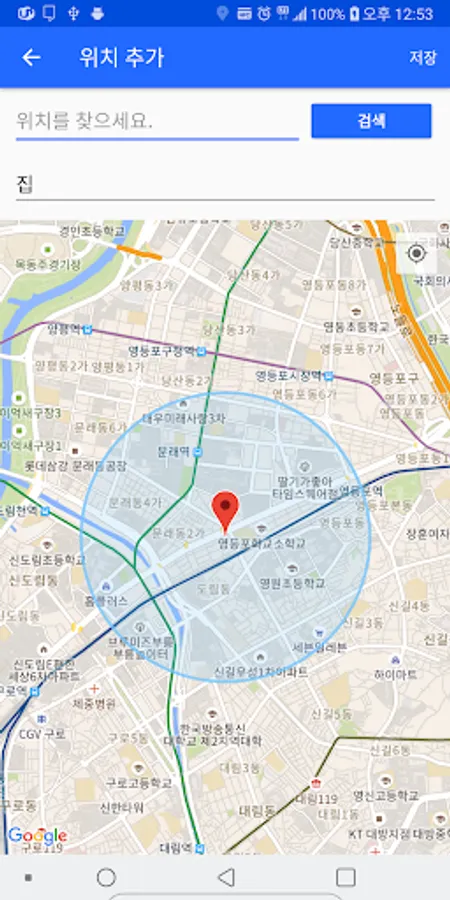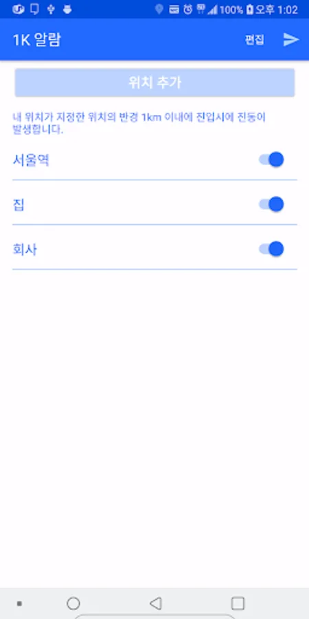 The app assigns a location, and when you enter a name, it vibrates within 1K of the specified location.