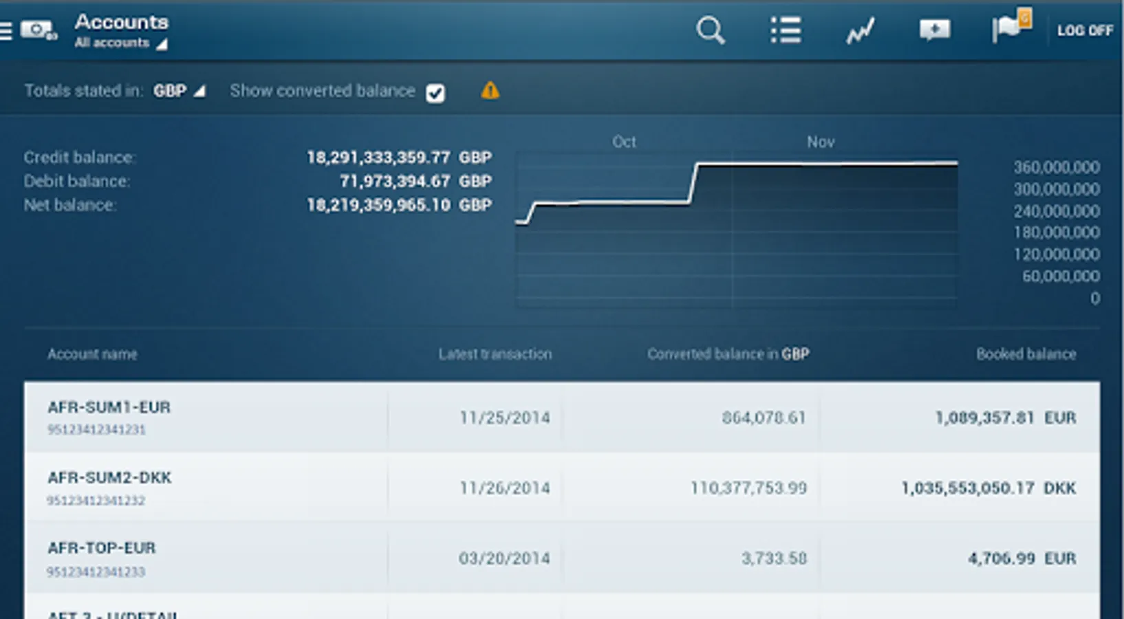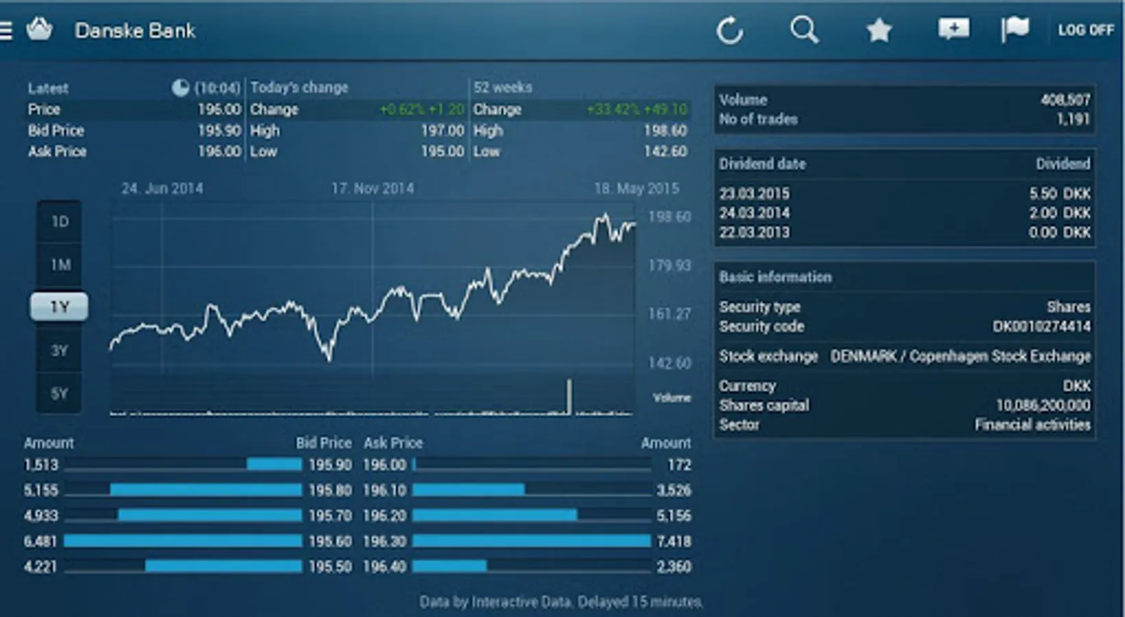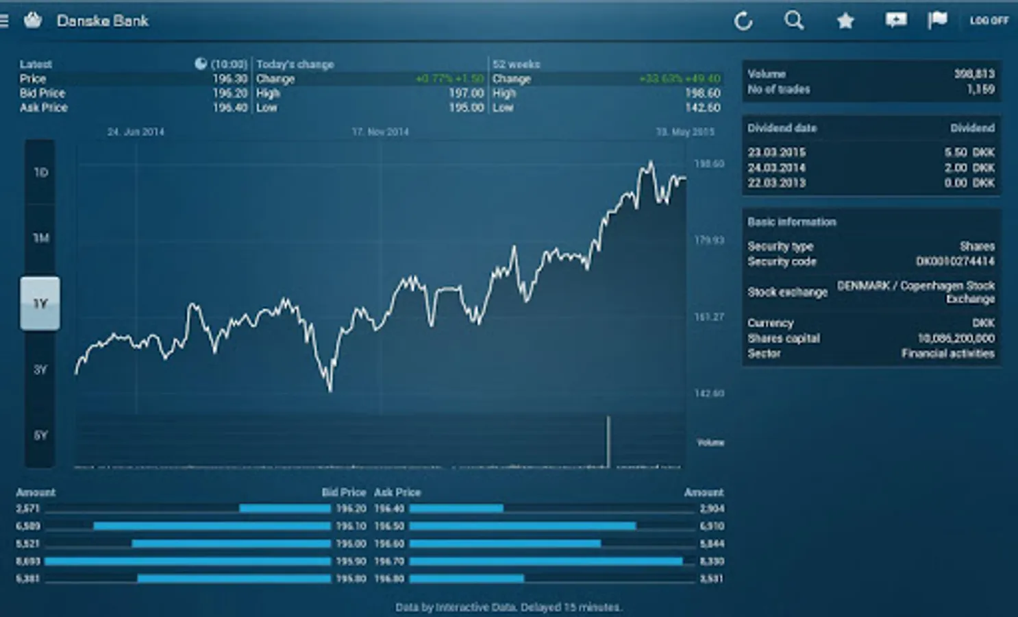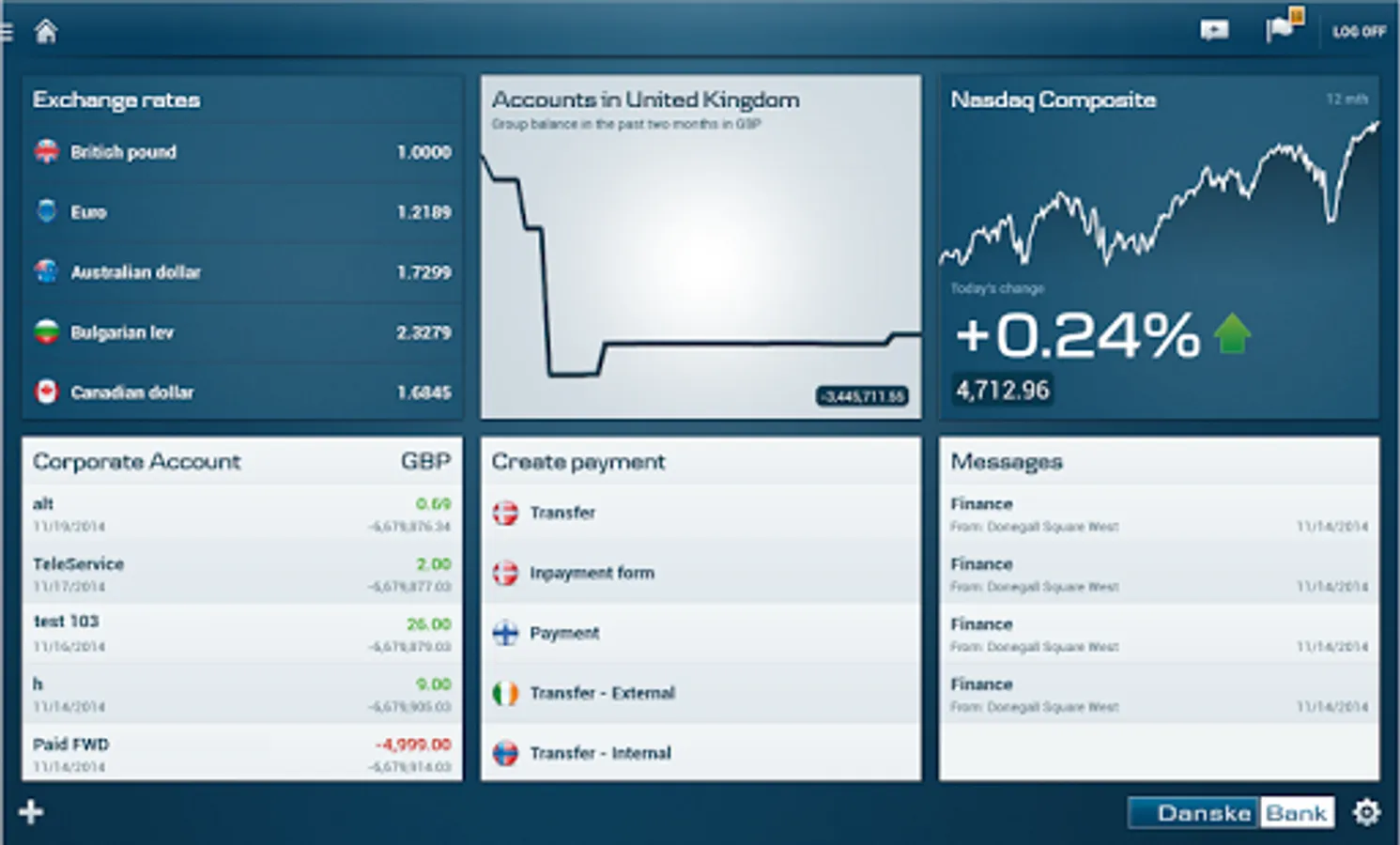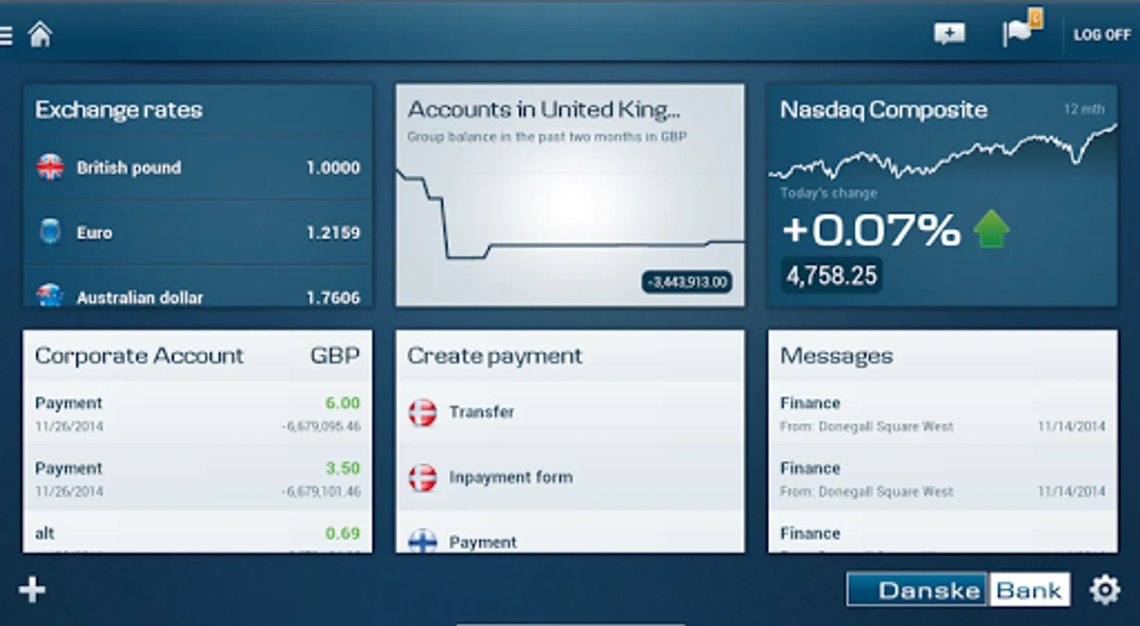 The Danske Bank Tablet Business app can be used by all the Group’s customers. In order to view and operate accounts held with a particular unit within the Group, you must log in and enter the security information given to you by that unit. You can also make an agreement that will allow you to access all of your accounts held with the Group without needing separate log-in arrangements.