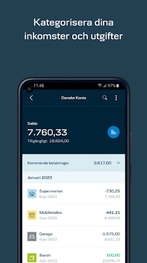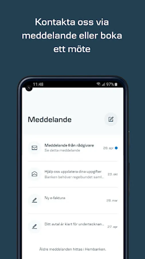 The mobile bank gives you overview and freedom to manage your finances anywhere, anytime. With it you can easily contact us and make both small and large financial decisions.