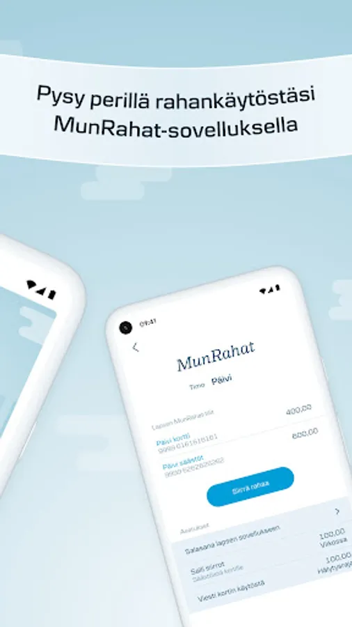 MunRahat app, the child can learn the management of financial affairs under the supervision of a parent. A child may receive, use and save money application. The guardian manages the use of money in your child's mobiilipankissaan.