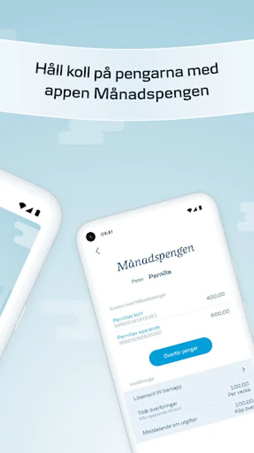 As a parent you order Month-up grant for the child in the new mobile bank from Danske Bank. You can also transfer money and get an overview of the child's account. You can get a message when your child uses the card, and also limit the use. Your child can not transfer money to other accounts through the app.
