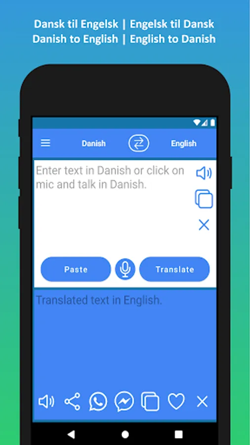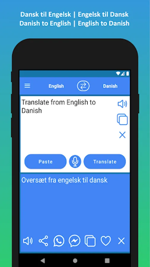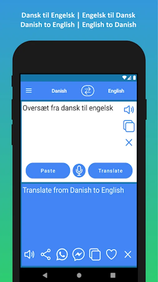 ✓ Oversæt nemt dansk tekst til engelsk ved hjælp af vores gratis dansk til engelsk oversætter-app. Du kan også udføre engelsk til dansk oversættelse.