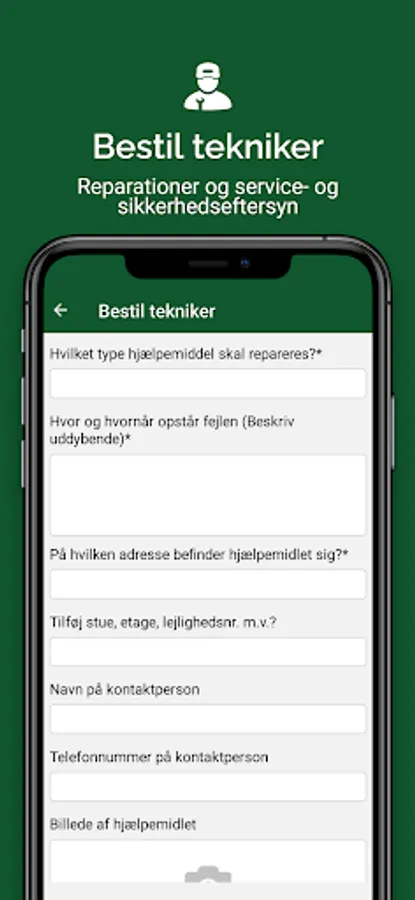 Dansk Plejeteknik Serviceapp gives you an overview of your aids' service data and direct access to ordering technicians, spare parts and picking up defective spare parts.