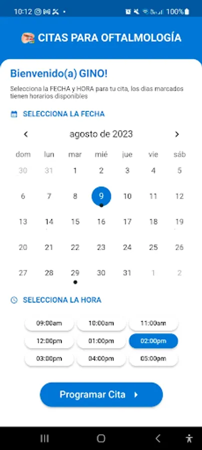 Utility for scheduling Appointments for the specialty of Ophthalmology at the CMI Santa Luzmila II Health Center.