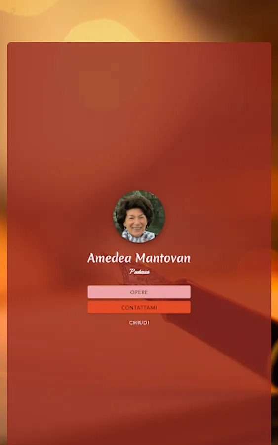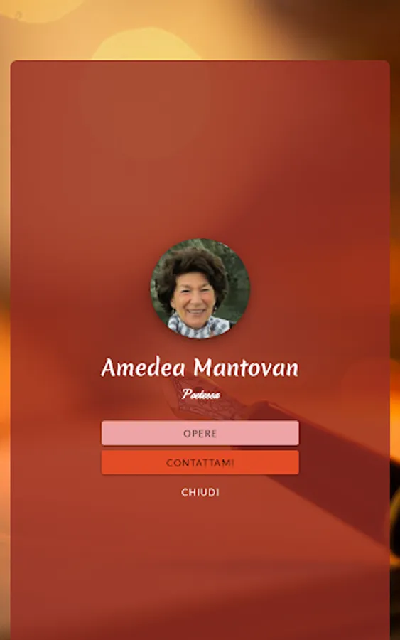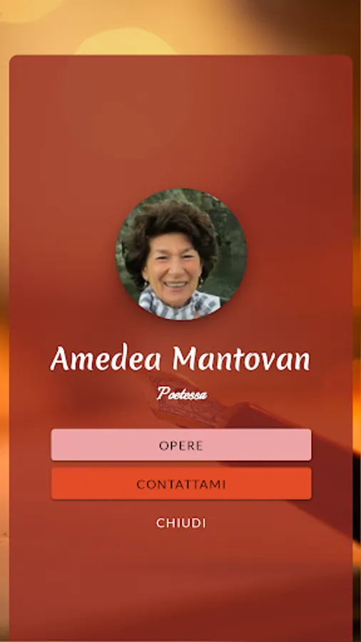 Biographical note: Literature professor, holds courses in History and Current Affairs at a University for Adults/Elderly (at the Rezzara Institute in Vicenza). He has published some collections of poems: "The breath of the sea", "At the edge of memory" (translated into Serbian) (Ed. Gnosos, Belgrade), "As a light breeze", "In the air, the scent of roses ..." and two narrative-testimonial books: "Barefoot on mother earth", and "1941/45 North Africa-notes of a medical lieutenant", Ed. Veneta, Vi. Some poems are contained in the Anthologies: RIFLESSI, PROSPETTIVE e MESSAGGI (2016), ed. PAGES. Rome. Winner of the Review lett. Antonio Giuriato-Vicenza, in 2011.Finalist at the NATIONAL POETRY AWARD "POETANDO TOGETHER" of Recoaro Terme, in 2012, winner of the First national prize "The ENCHANTED GARDEN" 2014, organized by the INNER WHEEL of Valle Caudina (Benevento), of the Third national prize, "THE ENCHANTED GARDEN" in 2016 - First INTERNATIONAL PRIZE "LITERATURE" 2016 section. Single poem "-ITALIAN INSTITUTE OF CULTURE OF NAPLES- in 2018 still the first INTERNATIONAL PRIZE "LITERATURE" section. Unpublished tale- ITALIAN CULTURAL INSTITUTE OF NAPLESSome poems appear in the Anthology of the most beautiful poems of the "Olympia Award- city of Montegroto Terme 2005". "The breath of the sea" (Editrice Veneta 2005) appears in the Anthology of the International Literary Award " ARCHE' Anguillara Sabazia City of Art 2006”Former President of the Last Supper of Vicentini dialect poets, which is based at the INTERNATIONAL LIBRARY “LA VIGNA” in Corso Fogazzaro. Founding member of the INNER WHEEL CLUB OF VICENZA, she was its President.