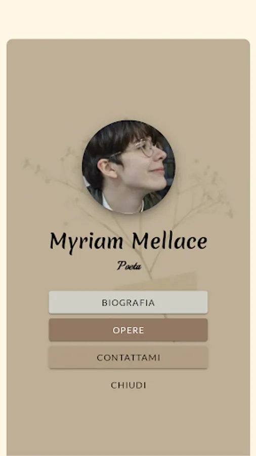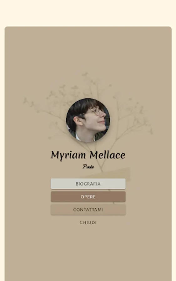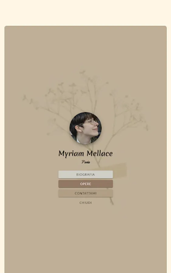 Born in 2003. I find it fascinating to immortalize, through words, the transience of a moment and crystallize it in time, beyond languages and schemes. My name is Myriam Mellace; autumn, the color blue and writing are among the things I have loved since childhood.