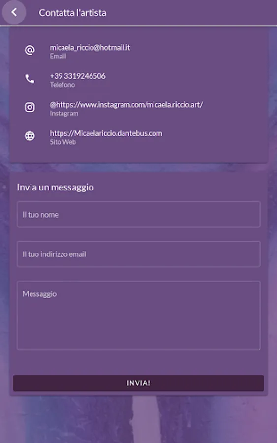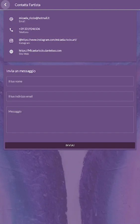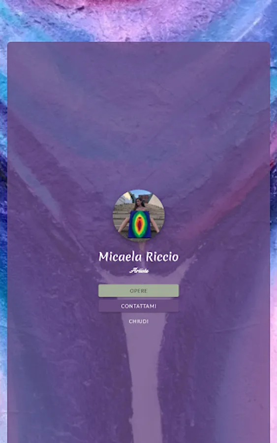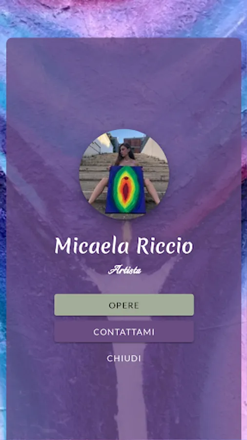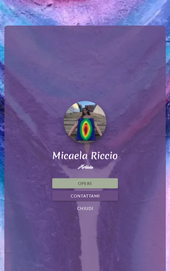 Riccio Micaela was born in Rome on 19 June 1997, since she was a child she has shown a marked interest in art, manual skills and creativity in all its aspects. During the university course in cultural heritage at the University of Rome "Tor Vergata", she becomes aware of not wanting to be only a scholar of art history but of wanting to actively participate in it. On 19 July 2019 she participates in the collective exhibition for "the night of songwriters" at Rocca di Papa. In 2021, moved by the need to carry forward a message of freedom and non-conformism, she gives life to her collection of vaginas on canvas, an exaltation of diversity, spirituality and the origin of everything. The deep love for colors, used as a fundamental means for their strong communicative power, is the leitmotif of the style of this young artist, who aims to arouse emotions and reflections on the female world and not only.