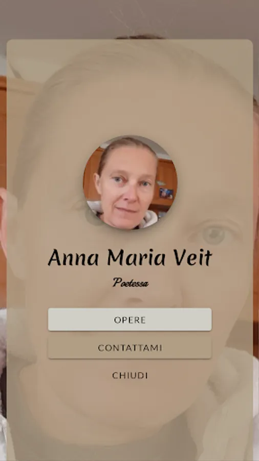 I'm Anna Maria Veit, I'm a yoga teacher. Married to Giancarlo, I have a son, Michele. I have a degree in Political Science. Only recently have I chosen to participate in Literary Competitions and several stories and many poems have been published to me. I've always written to tell myself stories, to keep me company and to explain things I don't understand, hoping that what I create is loved by other people or at least can be useful for "explaining things" to people like me who often find life certainly fantastic but sometimes a bit tiring.
