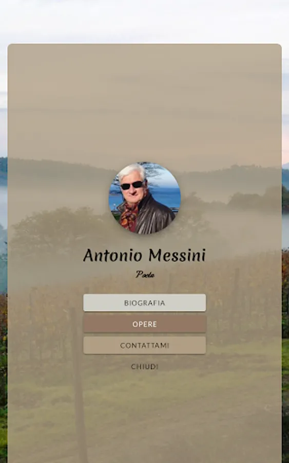 My name is Antonio Messini, I was born in a small town called San Francesco at the confluence of the Arno and Sieve rivers, a few km from Florence. I studied electronics and until recently I was a Telecom Italia network designer. My wife is called Carmen and she is Spanish from San Sebastian, my children are called Giulia and Diego. In the various phases of my life my references have been my father, Hemingway, Springsteen and Mario Rigoni Stern.