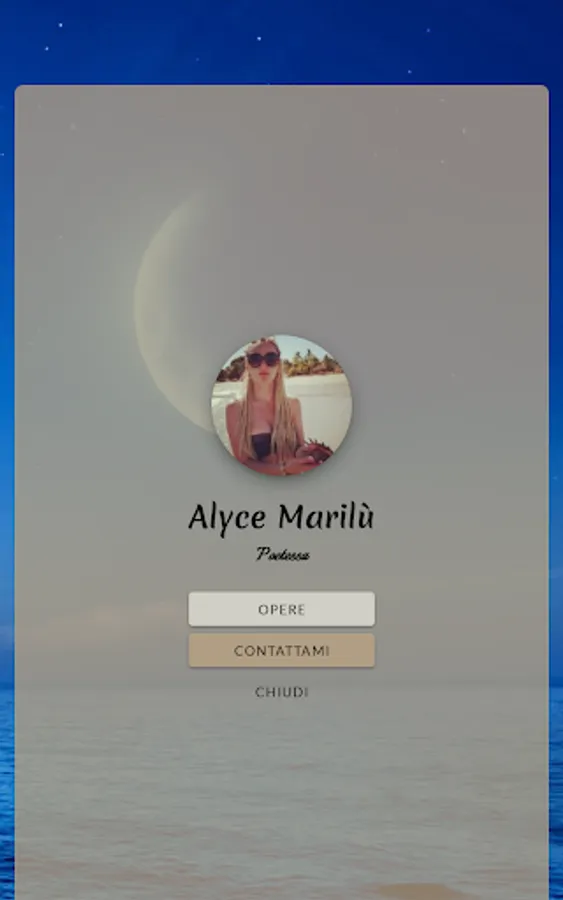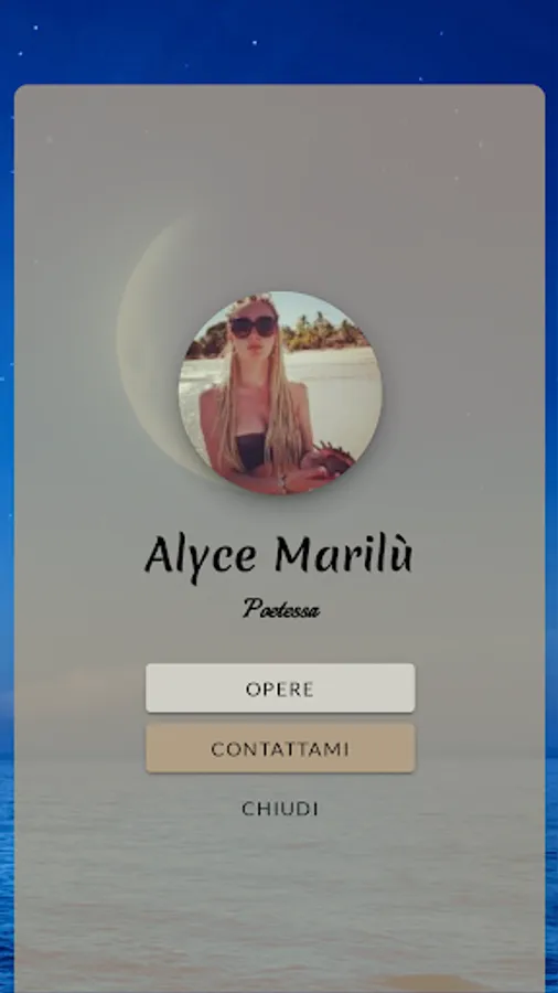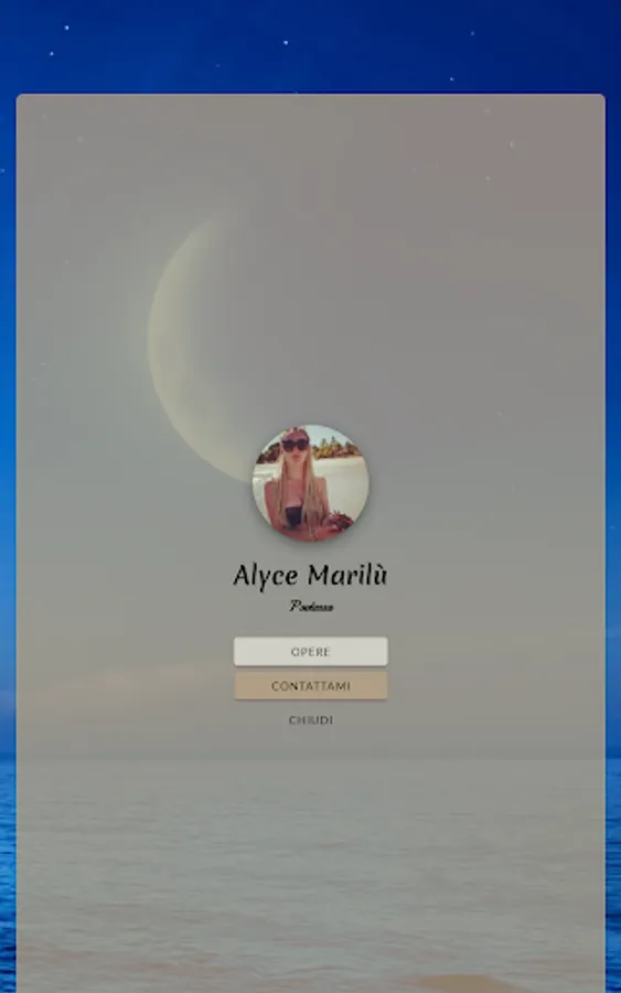 I am Alice Testa, aka "Marilù", like a song. I am 33 years old, I am married and I live in the province of Bergamo. I work as a childcare assistant in public and private structures for children of maternal age. I love children because they are a a bit like a poem: delicate but profound, which know how to touch the soul if observed with the right eyes, just like art. I am a woman who loves freedom, diversity and who always lives life on the razor's edge, with a shred of madness. Writing for me is like emptying the soul, it is being reborn on a sheet of paper and breathing thanks to the freshness of words which, if you listen carefully, resonate like music.