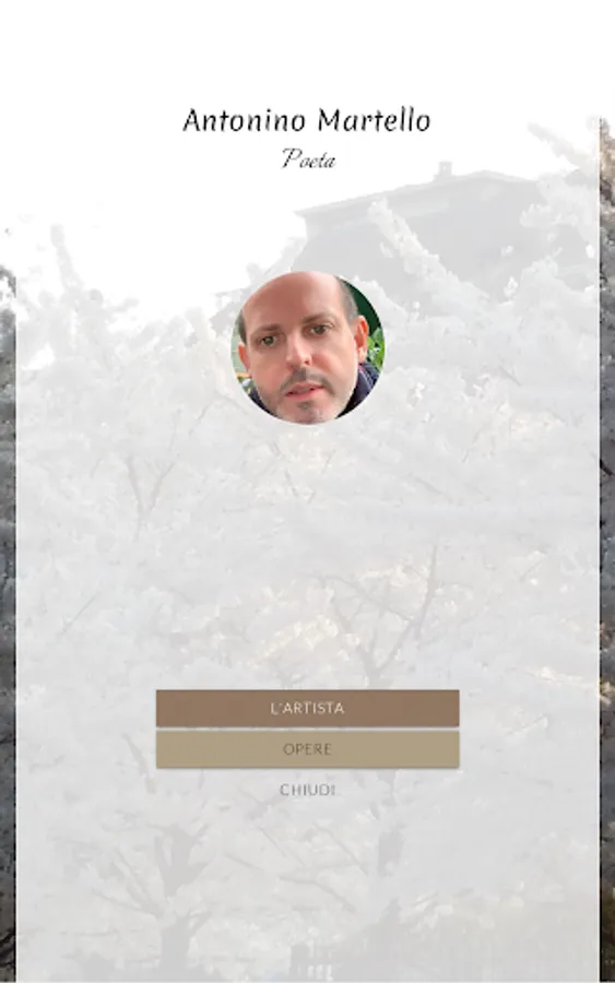 Antonino Martello (1971, geologist) is passionate about contemporary art and poetry. Fundamental to his poetic maturation was his friendship with the poet Carlo Invernizzi and with the artist Sergio Dangelo (for whom he wrote a portrait in poetry entitled " Portrait in wisteria assaults" published in the Skira catalog on the occasion of the master's solo show "Ancora e semper" at the Boschi Di Stefano House Museum in 2020, under the pseudonym of Antonin Martello). He writes convinced that poetry must above all be suffered in everyday situations.