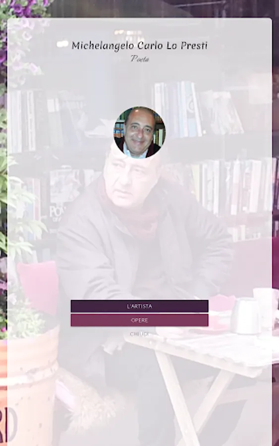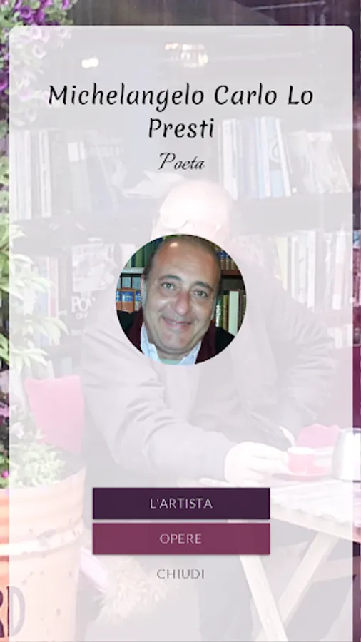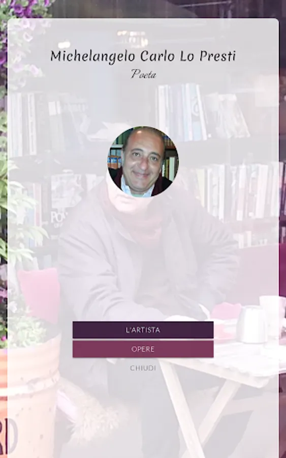 Michelangelo Carlo Lo Presti was born in Oliveri (ME) on 04/18/1958. After graduating from classical high school, he follows civil engineering studies, which he abandons to devote himself entirely to artistic activity. As a painter he holds personal and collective exhibitions in Italy and abroad. At the same time he carries out work in the engineering and antiques sector. He cultivates a passion for poetry, a sector in which he proposes himself today as a debutant.