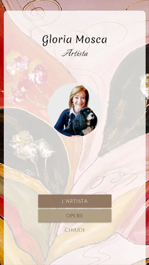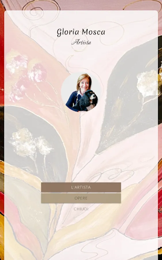 Gloria Mosca (14/08/1969) born in Busto Arsizio prov. Varese Outgoing, cheerful, creative and in love with her two dogs Ruby and Emma. She attended the linguistic high school, graduated in Interior Architecture and graduated in Fashion and Industrial Design specializing in renovations. Since she was a girl she has always had a passion for dance , music and art in general and as a self-taught he approaches painting by painting Christmas bags and boxes or for special events. The creation of canvases painted with acrylic colors came some time later. Most of the canvases have an abstract theme - field where the artist identifies himself more and where he is more able to express his own personality.