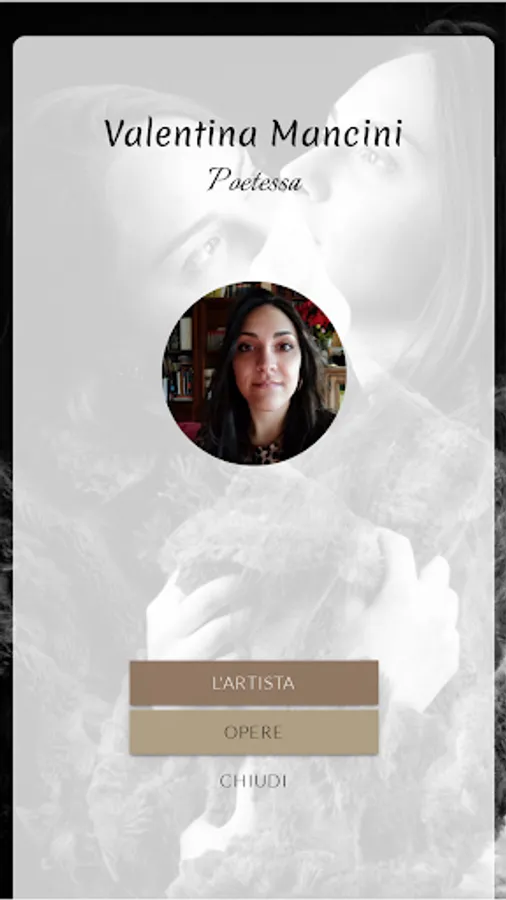 Valentina Mancini was born in Tivoli (RM) in 1993. Graduated in Mathematics, she works in the Information Technology field. He has always cultivated a passion for writing, in 2015 he published the collection of poems "The tree of life" in the volume Tramontane (Aletti Editore).