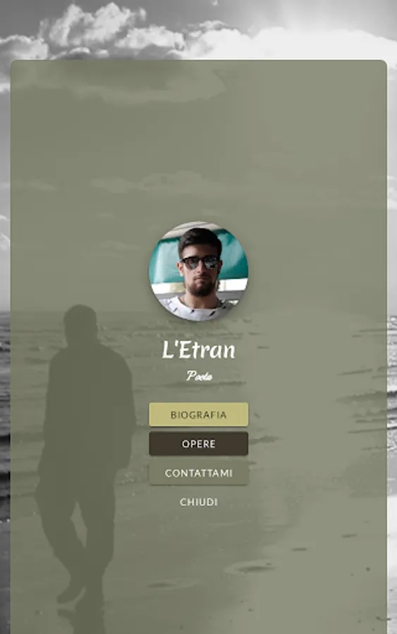 I'm Federico Falchi, I'm 26 and I've been writing since I was 18. I write out of necessity and requirement. When I compose poems I sign myself as L'Etran, to distinguish what appears of my being on the outside, from what I really am inside. I'm not a person who talks a lot or likes to be the center of attention, I dose my words only to say something useful and only if it's worth it. Often words are an insufficient and inadequate representation of reality, that's why it's overrated to talk. Then speaking doesn't always result in being listened to, so a few words could very well be wasted breath and wasted time. I write because what I write remains, because it is a trace of what I have seen or experienced on my skin knowing that at least from me, it will find memory in reading. I approached fierce reading, without pause, during the arrival of my major age, when, preparing the high school thesis I wanted to bring Fabrizio De Andrè, fascinated by the song "il Suonatore Jones", a man who, although having almost nothing in hand, manages to be happy. My thesis focused on the search for happiness of De Andrè, of historians, philosophers and writers by comparing the pessimism of some with the optimism of others. Paradoxically my life is based on the search for this, between optimism and a lot of pessimism , between joy in a family that I consider perfect and between depression, loneliness and sadness due to a society and a historical era too far from my being. In these moments of darkness I seek comfort and understanding in books, trying to find inspiration or answers to questions to which I don't always find an immediate answer. My favorite books are Blindness by Josè Saramago and 1984 by George Orwell.As for my stage name, this takes shape from the name Ettore Randagio. Stray because my mind often wanders without a precise destination, while my body remains motionless in a context in which it doesn't always manage to stay. Ettore trivially because I've always been surrounded by people with the same name as me and I chose one I liked, “l' ” because even if I consider Etran as a proper name, I use the article to give him, probably incautiously, the ability to artist/poet. However, I would also like to be published with my name, to allow those who have known me to discover my inner, more fragile, emotional and hidden self.