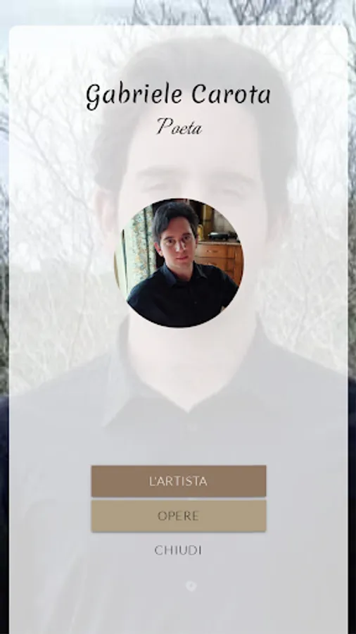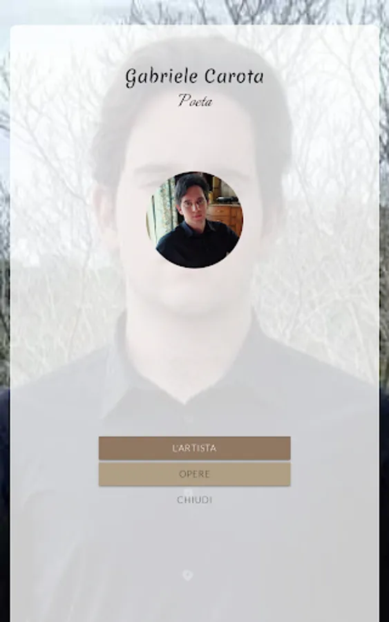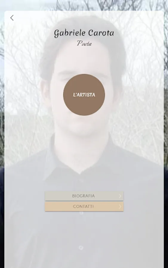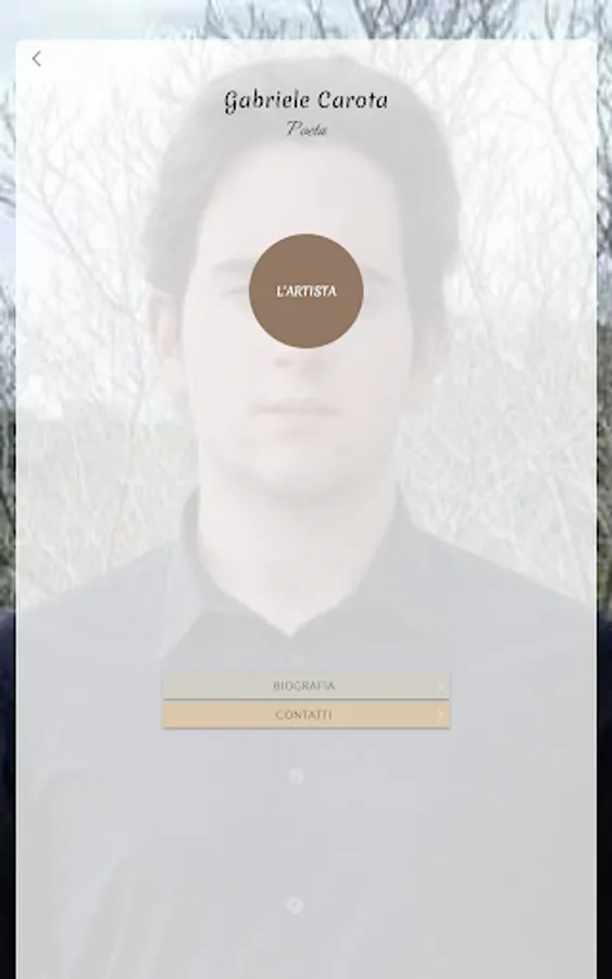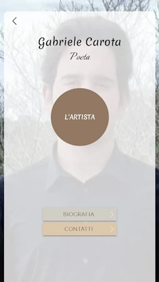 Gabriele Carota was born in Chieti on 22 December 2002. He began to fall in love with the world of art at the age of 14 with music, and then developed an interest in literature, especially poetry, during his studies. He is still an economics student at the d'Annunzio University in Pescara.