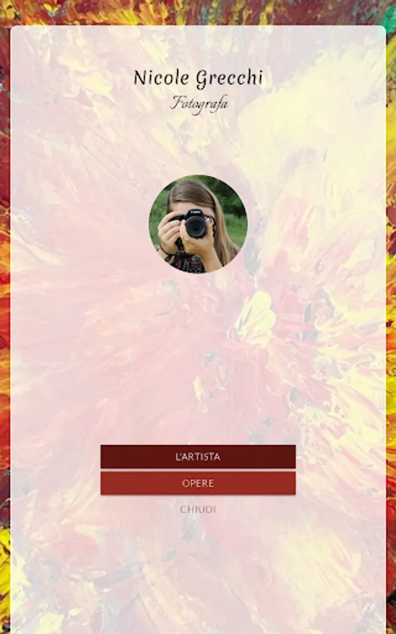 Born in 1971, he was born in Volgograd, Russian Federation, in Italy for 25 years. Since she was a child she has been a nature lover and has a passion for drawing. Since she was a child she has practiced dance and sport (athletics) even at a competitive level. Her desire is to take care of people she would like to become a doctor but unfortunately she can only become a nurse. She then dedicated herself to the art of massage, achieving various specializations that allowed her to transform this studio into a profession. After raising two children, in his spare time he resumed the art of drawing and painting as a self-taught, creating a style of his own. She loves colours, which are an expression of emotions for her.