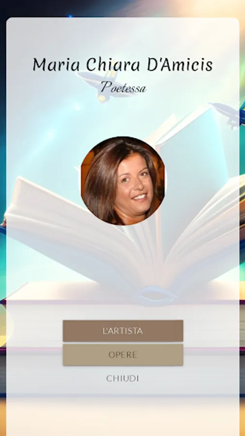 Maria Chiara D'Amicis, graduated from the classical high school of Pesaro, where she lives and works; a degree in social work from the "Carlo Bo" University of Urbino and post-graduate training in family mediation. Mother of two children