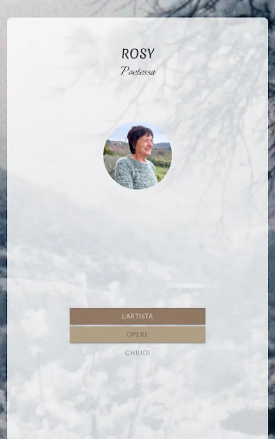 Maugeri Rosaria A., born in Fontana Liri (FR) on 25 March 1954. She graduated in Literature at the University of Cassino in 1976. She immediately practiced the profession of secondary school teacher of II° grade. She has dedicated herself to poetry (both in the language and in the vernacular) and to narrative, since childhood. The poetic themes present in her production are: nostalgia for the past; affections; nature; faith; the social.