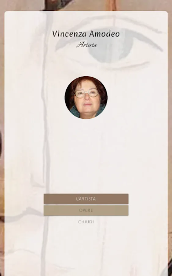 The author Vincenza Amodeo was born in Gallico Marina (RC) on 20 September 1949. She graduated from the "Mattia Preti" Art School in Reggio Calabria and since 1970 has been teaching art education and art history in various middle and high schools between Lombardy and Calabria. After twenty years of service, he abandoned teaching to devote himself full time to his own artistic activity. Over the years he collaborated with various personalities from the world of art and fashion, making his works known through numerous solo exhibitions and participating to group exhibitions of both national and international importance. With the cycle of paintings entitled "Women on the way", of which the work "Io Sono" is part, he embarks on an introspective journey that wants to induce the viewer to become aware of himself, meditating on the real value of every woman, which goes beyond the "role" that is recognized to her.