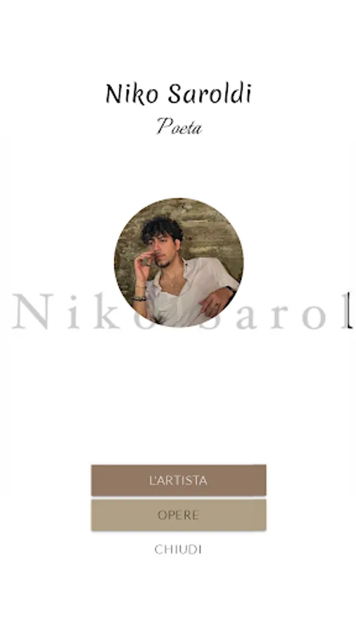 Niko Saroldi was born on 20 September 2004 in Poggibonsi and spent his childhood in Montaione. From the very beginning he showed interest in art, especially being passionate about music and writing. Niko begins to write his first poems at the age of 14, trying to best express himself and what tormented him. This passion intensifies further, leading him to write more and more frequently, inspired by his favorite authors, including: Novalis, Ungaretti, Bukowski, Neruda, etc.