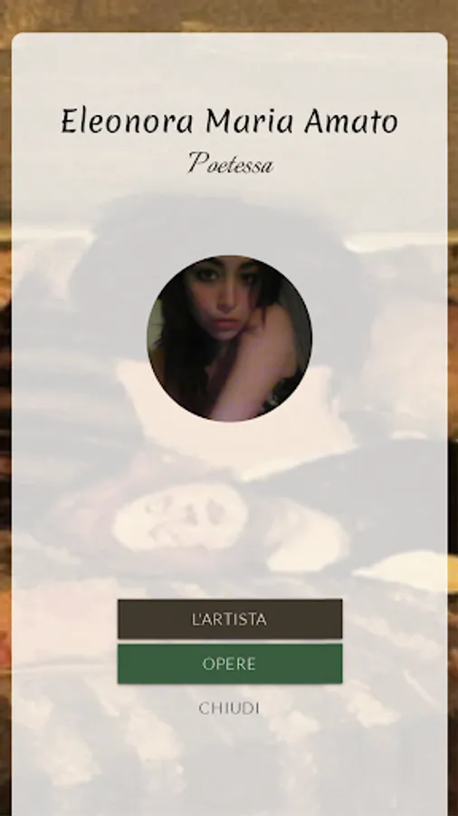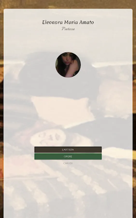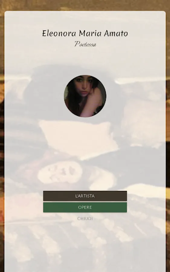 Eleonora Maria Amato was born in Castellammare di Stabia on May 6, 2005. She spends the years of her life in her hometown with her family, the pages of her diaries and the immense vision of the surrounding sea. Lost in the wonders of reading and in the sensations of the sea waves, the desire to compose is born in her. In her dreams as a child the figure of the writer is imprinted, so that she begins to read novels, prose and everything that could happen to her in her hands. His first poems are streams of consciousness scrawled on blank pages, where confusion reigns that only poetry could have rebalanced. He finds in it the need and the quiet and, at the age of 13, the birth of his poetic expression coherently began. From that moment her verses represent for her the means to relive a sensation, an expression or a feeling, and everything that lives almost always ends up taking a literary form. With the still current desire to become a writer, Eleonora represents herself in the world of her poetry to escape from a social context where culture almost seems to have no concrete value.