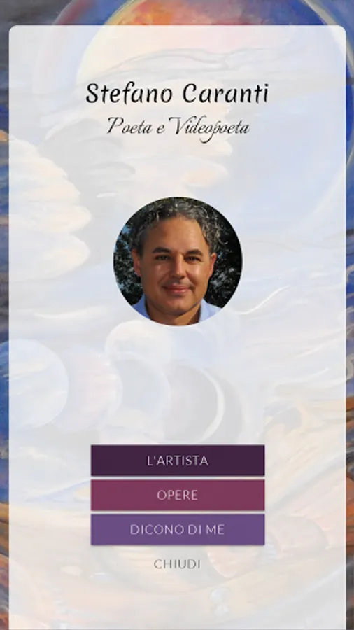 Stefano Caranti was born in Imola (BO) in 1965, lives in Santa Maria Maddalena (RO).Poet, video poet, videomaker, writer and director.During his adolescence he discovered the power and charm of poetry.In 2008 presented his first work "Seekers of dawns, shadows and light" and in 2018 he created the collection (Poems and Videopoems) "The guardians of the dawn", introducing an innovative format. Some of his author Videopoems were selected and presented at the modern and contemporary art exhibition, obtained awards in the Campidoglio and screened in the cinema, chosen by a record company in Rome, broadcast in podcasts, made in the radio version, viewable on web-radio stations and on national television channels. He has received numerous awards and is often called to act as a juror in national and international poetry competitions. His compositions have been included and reviewed in various national and international anthologies and magazines, some translated into Greek, Spanish and Serbian.Since 2017 he is part of the technical-organizational committee of the international project "A rose for Anita", creating the official video poem work n.23 "Anita is your name" translated into 4 languages (English, French, Portuguese and Spanish) from a text by the poet Maria Gabriella Conti. From 2019 he was appointed national secretary for Italy of the artistic-poetic movement "Poetas del Mundo" and coordinated the project for the realization of the Italian National Anthem "Poets of the World". In January 2020 he became Co- Founder of WikiPoesia. In July 2021 he became Co-Founder of the Videopoetic Artistic Movement. CULTURAL COMMITMENTS: Since 2017 he has been part of the technical-organizational committee of the international project "A rose for Anita" coordinated by Dr. Andrea Antonioli, with dissemination and enhancement in Italy and in the world the values and image of the heroine of 2 worlds Anita Garibaldi. The tool to implement this poetics is a very particular and suggestive rose hybrid, chosen as a symbol to spread the values and virtues everywhere of Anita, reflecting her emancipation, moral integrity, purity of soul, respect for others and sense of duty, as well as love for the homeland, for peoples and for the oppressed. "Anita Garibaldi" has already been planted in various parts of the world and in Italy. In 2020 she received the honor from the University of Salamanca - Spain. Since 2020 she has been the National Secretary for Italy of the Poetas del Mundo, and created the Italian site www.poetasdelmundo.it In lower secondary schools he created various intermediate projects presenting "Video poems on tour" to bring children closer to the artistic/poetic world with a more engaging communication, music, images and words come together, a bridge between classic and modern where tradition and technology come together in an extraordinary experience that appeals and excites all age groups.