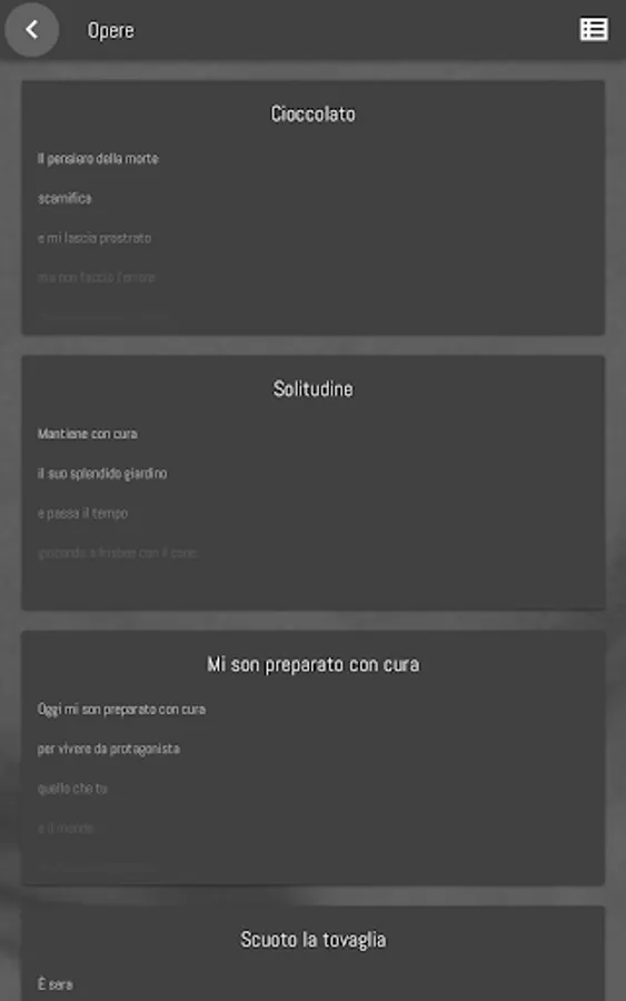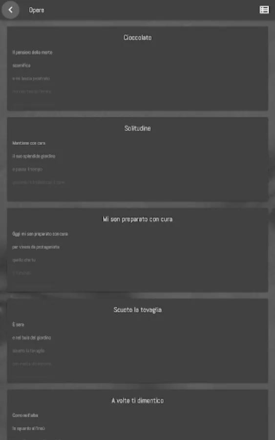 He has also published the collection of poems, images and stories Cose che non accadono mai (2006); the short story collection The Seduction of the Instant (2008); the collection of short stories, poems and short writing exercises A silence of good quality (2011), and the novels The sense of the anomaly (2014), The description of beauty (2017), and The structure of yellow and black (2021) .