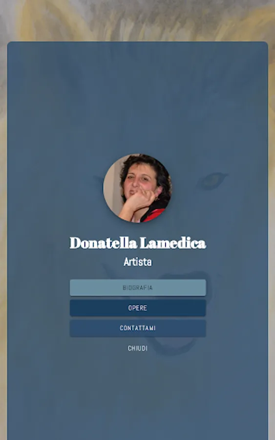 "Born in Rome on 10/4/58, she is married, has seven children and currently lives in Piedmont, in Pinerolo. Graduated in art history at the Faculty of Letters in Florence, she has been painting for more than twenty years with various techniques, primarily in oil. Predominantly a landscape painter, influenced by the impressionist current of the 19th century, she has lately been developing an experience in pastel drawing. She has experience working with clay and painting on earthenware."