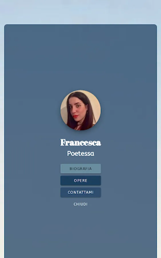 I have 20 years. I am a university student and I live in a small town in Sicily. I love writing, I write what I feel and what I think in verse, I find it a way to gain self-awareness and at the same time to get rid of a weight on my heart.