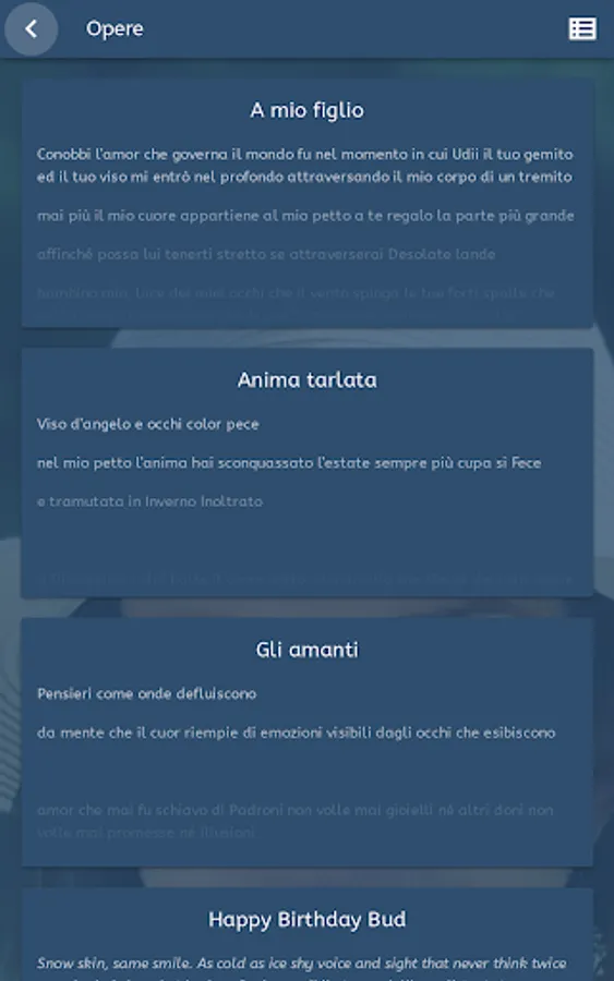 Born in the province of Venice, I have a passion for Italian literature which leads to a passion for poetry in high school thanks to prof. And poet Luigi Cerantola, a passion that also flows in the veins of my grandmother who was a poet and graduated from the conservatory.