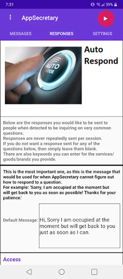 Easy to use & configure auto responder app!