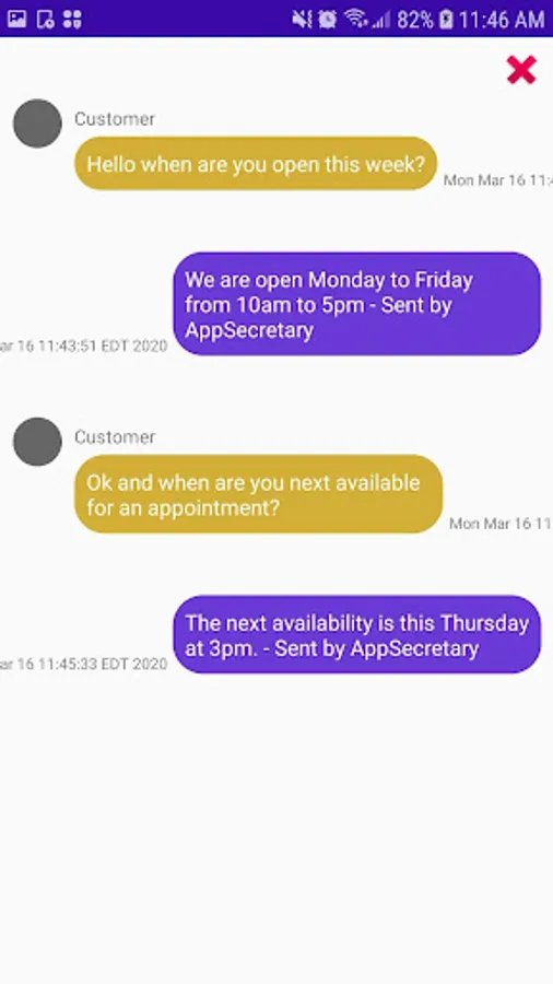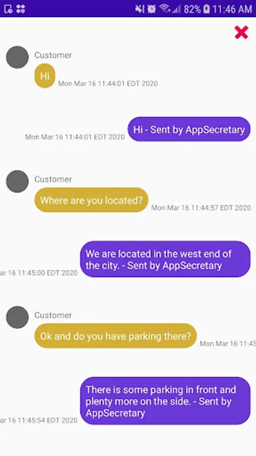 An app for In-vehicle hands-free use or projected display, AppSecretary automatically and intelligently replies to incoming text messages based on message content. Responds to many of those most common questions asked by customers to you or your business.