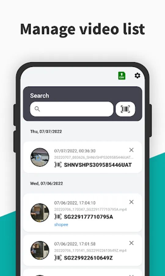 - Scan the barcode to start recording, and scan the barcode once more after packaging to save the video.