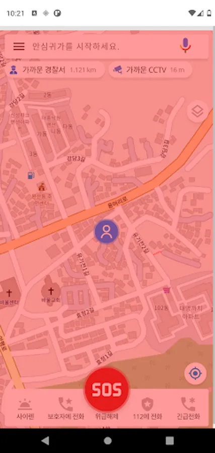 2. The user's GPS location information is transmitted to the registered guardian and the local government's crime prevention CCTV center, and in case of emergency, monitoring using nearby crime prevention CCTVs and police dispatch are possible.