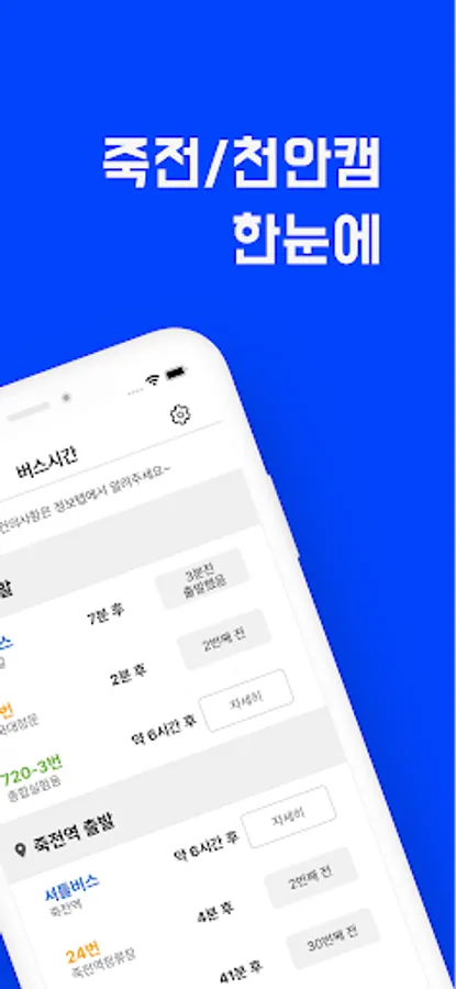 2. Provides estimated bus times departing from Jukjeon Station/Dujeong Station.