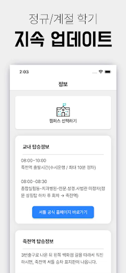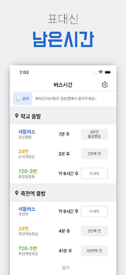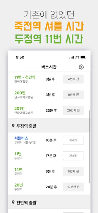 4. You can compare city bus and shuttle bus times related to Dankook University at a glance.