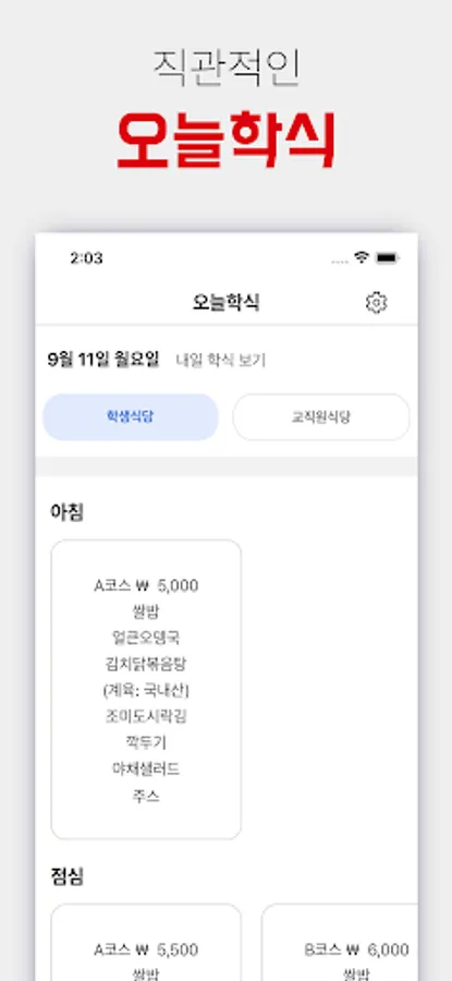 5. Provides an intuitive today’s education menu. (Student cafeteria/faculty cafeteria, etc.)
