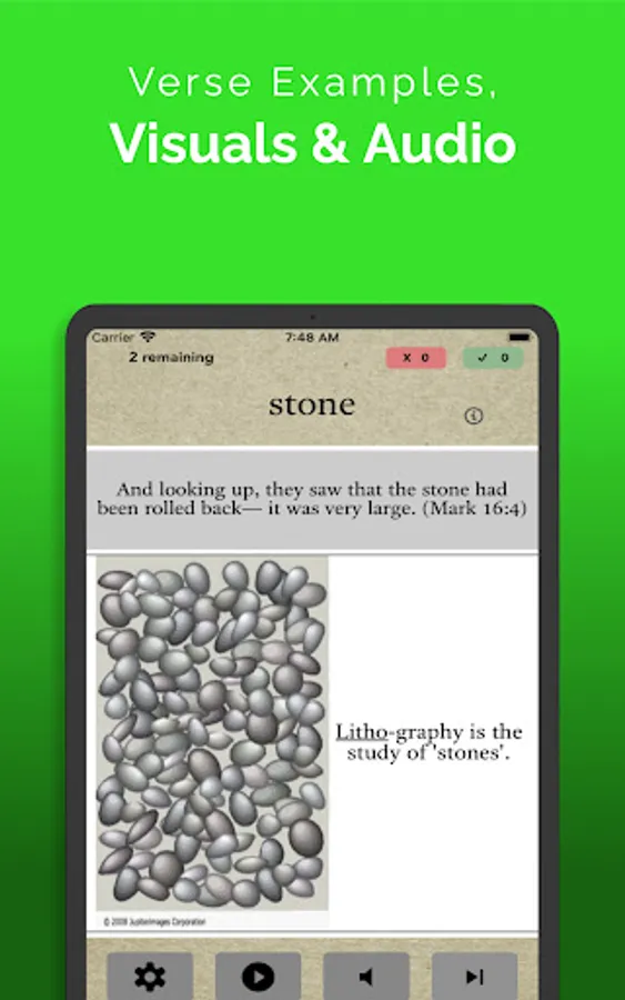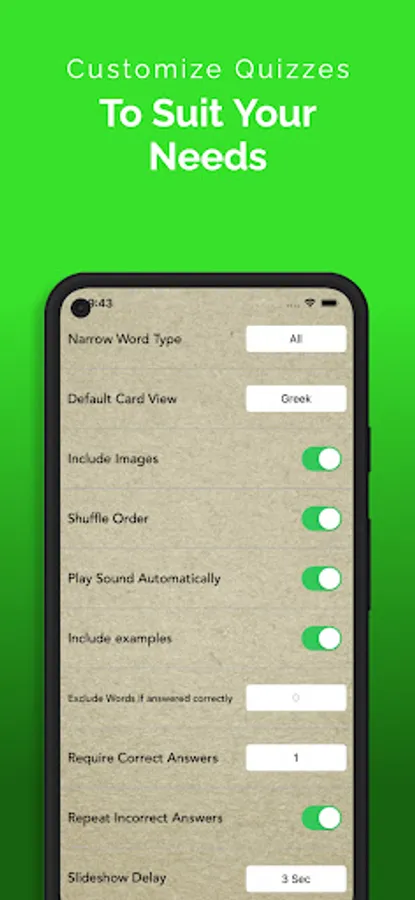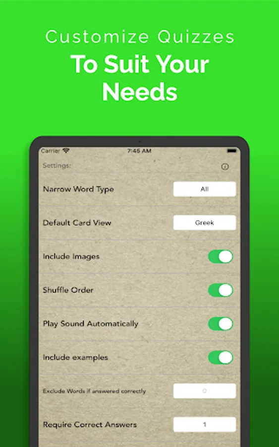 Tailor quizzes to your needs, including as much or as little of the multimedia content as you want. Or sit back and study in slideshow mode, even while driving! Either way, you'll be acing those vocab tests in no time.