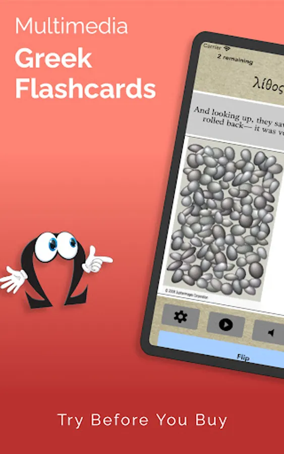 This free version of FlαshGrεεk allows users to try the app before purchasing. Users can unlock the Pro version or just the flashcards for each compatible grammar.