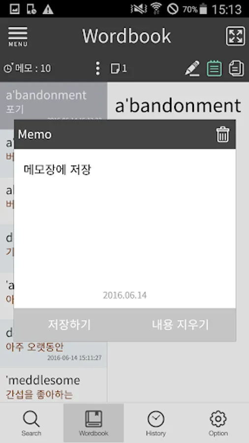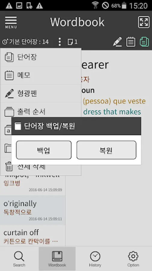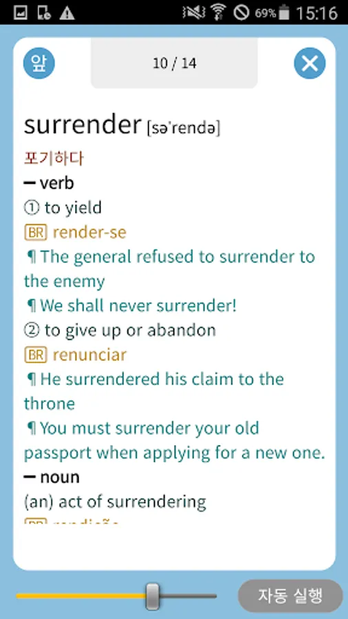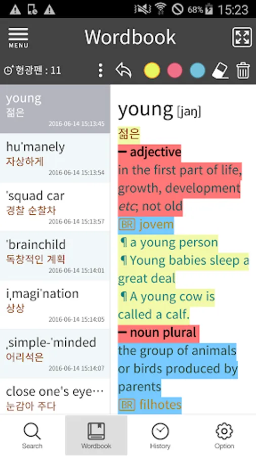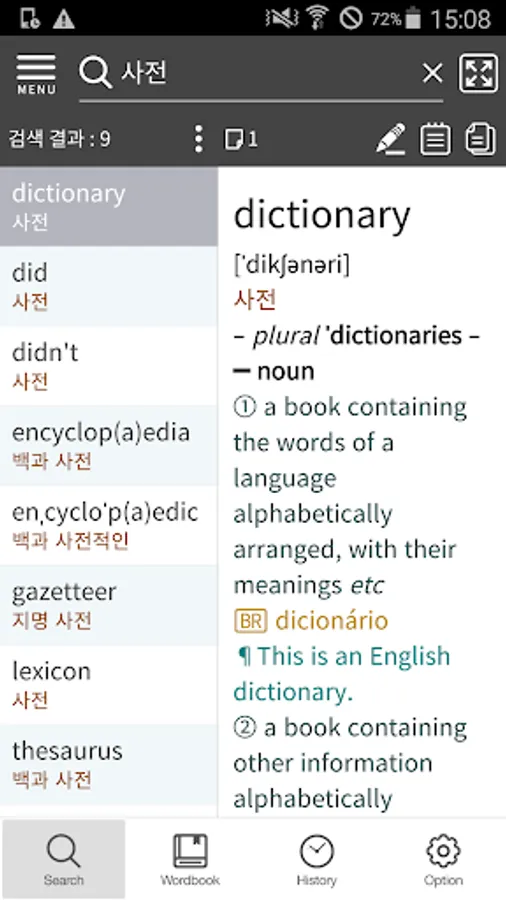 ※ 본 사전 어플은 한영을 기준으로 보통 영어로 검색되며, 한글은 표제어가 있을 경우 검색됩니다. 한영 검색 결과를 브라질어로 보여주며 별도의 브라질어 입력은 불가함을 알려드립니다.
