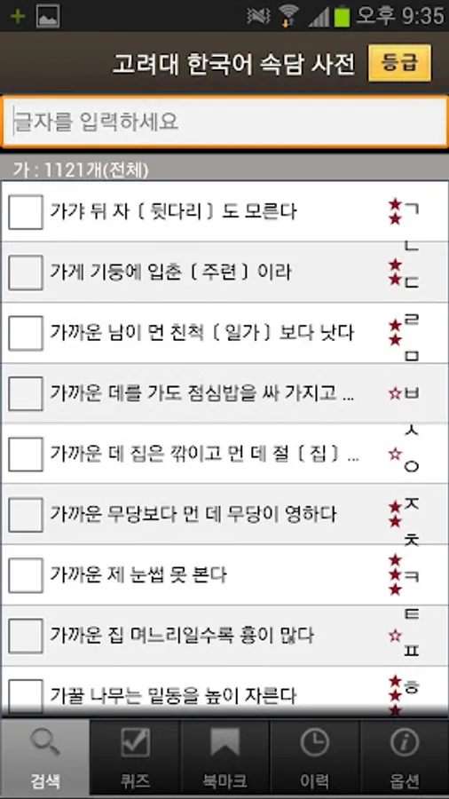 * 등급별로 제시된 퀴즈를 풀어 보면서 자신의 속담 실력 확인