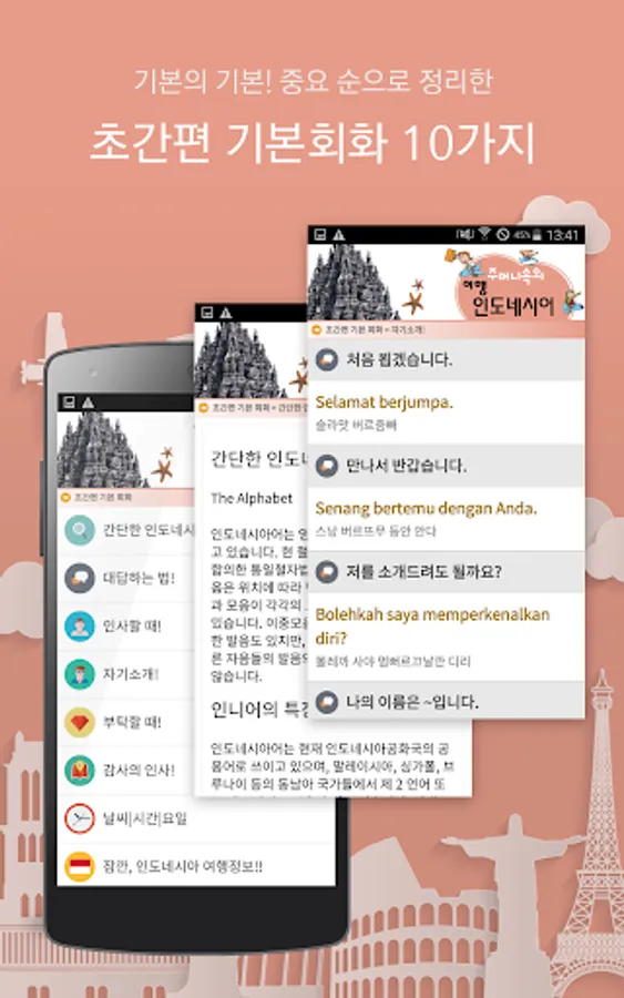 해외 여행자를 위해 가장 확실한 도움을 자랑하는 도서출판 신나라의 여행용 회화책 시리즈 중에 인도네시아어 회화책입니다. 가장 완벽한 대화 상황과 풍부한 회화 문장으로 비교를 불허합니다.