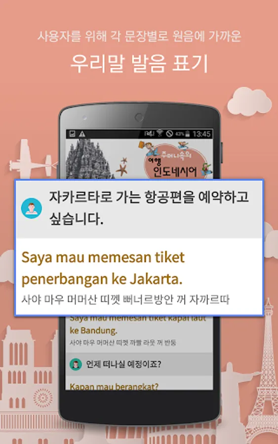 - 각 문장별로 원음에 가까운 우리말 발음을 표기하여 외국어를 모르는 분들에게도 많은 도움이 될 것입니다.
