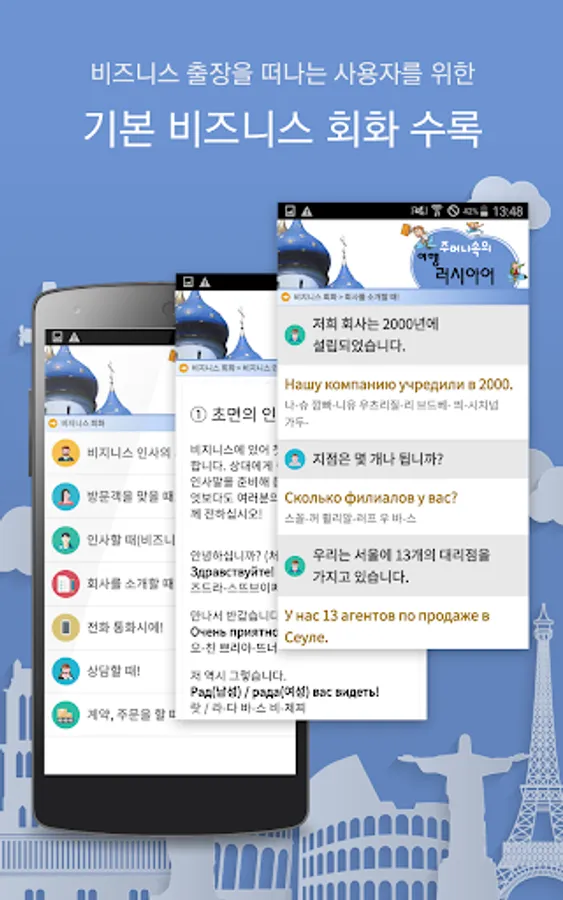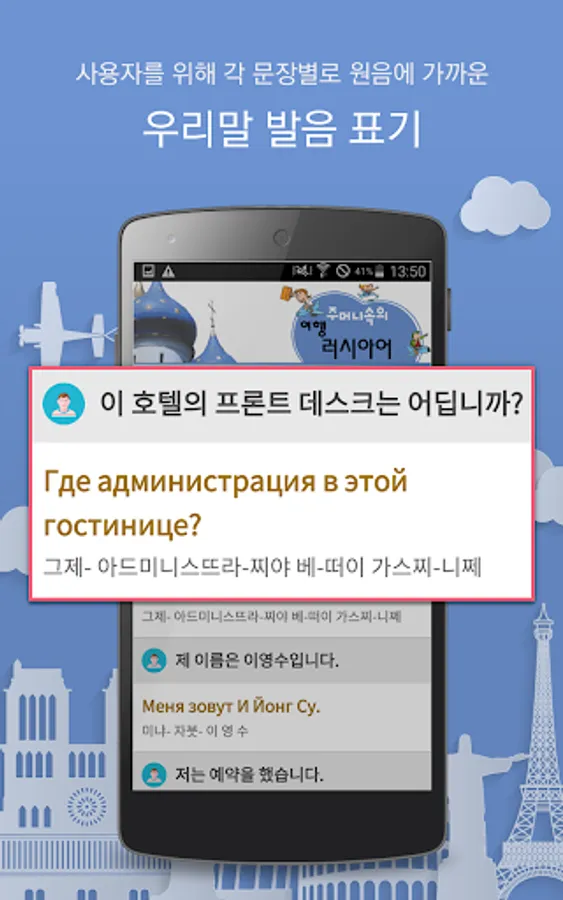 - 각 문장별로 원음에 가까운 우리말 발음을 표기하여 외국어를 모르는 분들에게도 많은 도움이 될 것입니다.